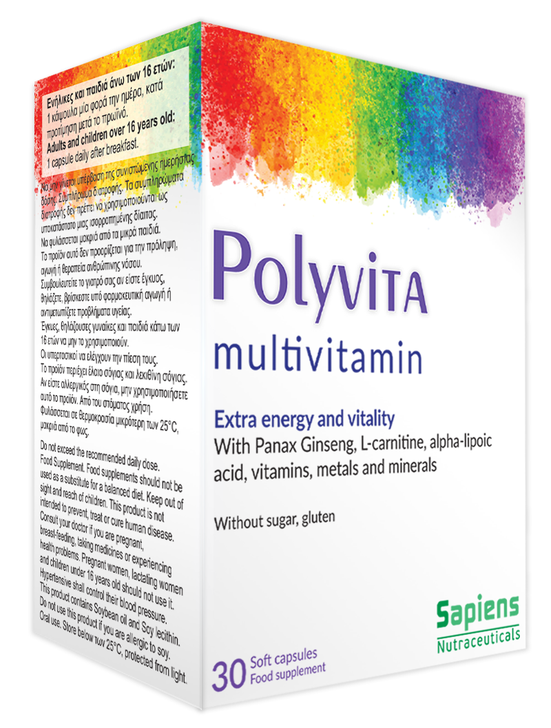 Ingredients: Vitamin B1, Vitamin B2, Vitamin B3, Vitamin B5, Vitamin B6, Vitamin B12 Folic Acid (B9), Vitamin C Vitamin E, Vitamin H, Soya oil, Soya lecithin.